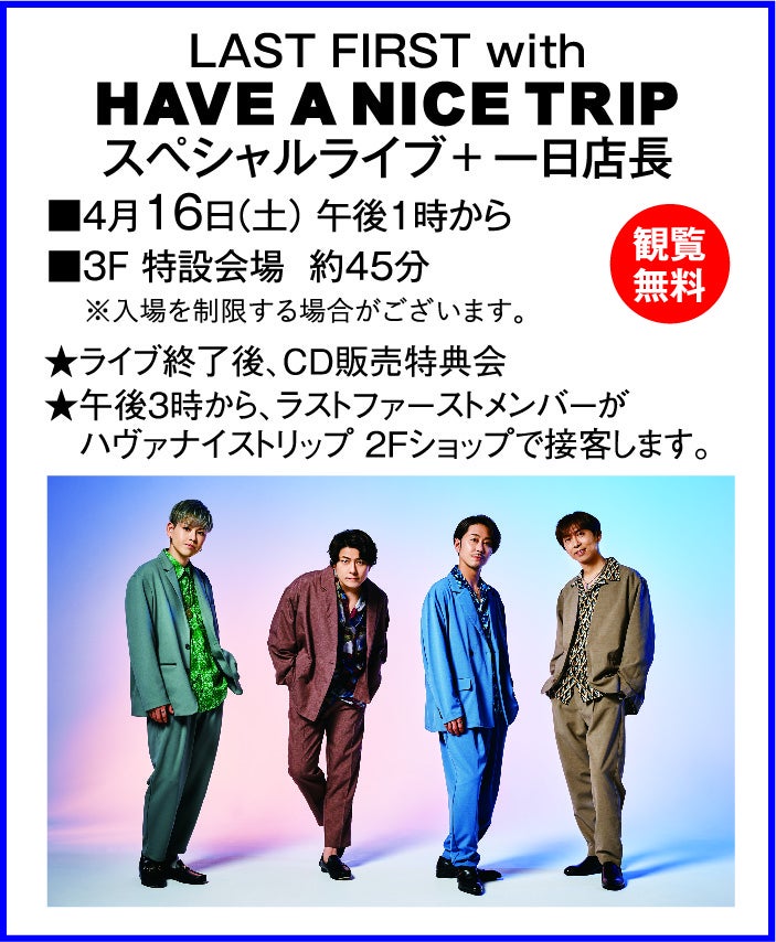 そして第二弾の今回は、『ハヴァナイストリップ』の東武宇都宮百貨店 大田原店のショップにLAST FIRSTのメンバーが訪れ、「スペシャルライブ&1日店長」として、新しいスタイルのイベントを開催。