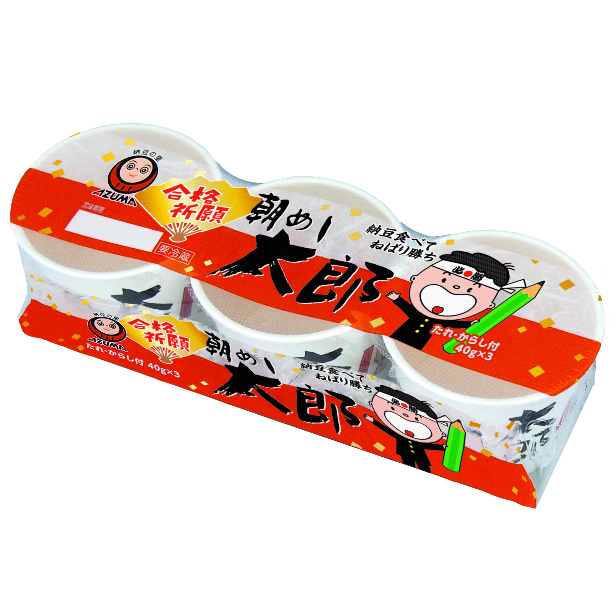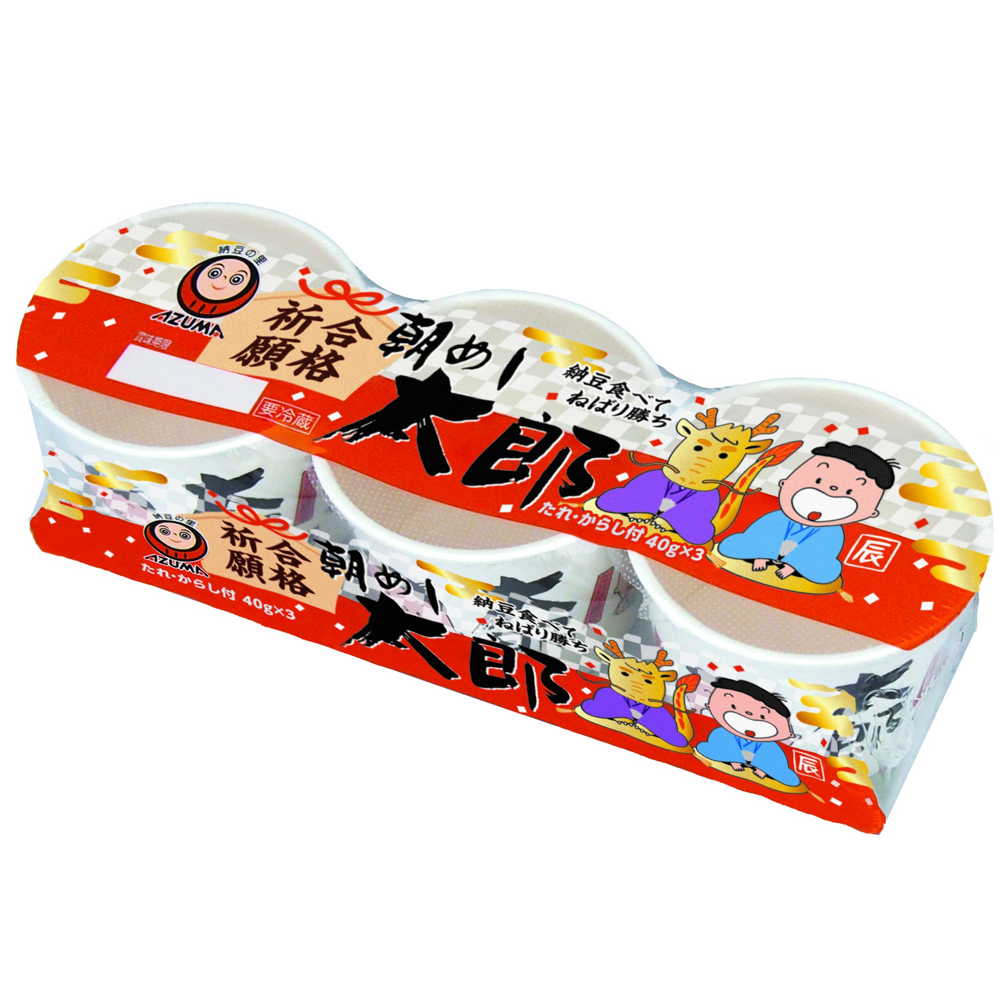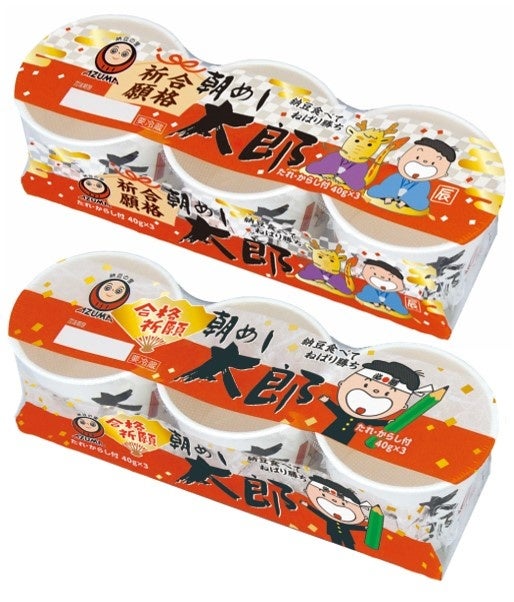 納豆ひとすじ73年、あづま食品株式会社(本社:栃木県宇都宮市、代表取締役社長:黒崎英機)は、栃木県内の学校給食でおなじみ「朝めし太郎」で受験生を応援。「学生服を着た受験生」「24年の干支 辰」の2種の期間限定パッケージに変更して販売いたします。納豆の特徴でもある「粘り」とかけて、「納豆を食べて粘り勝ち」をアピール。