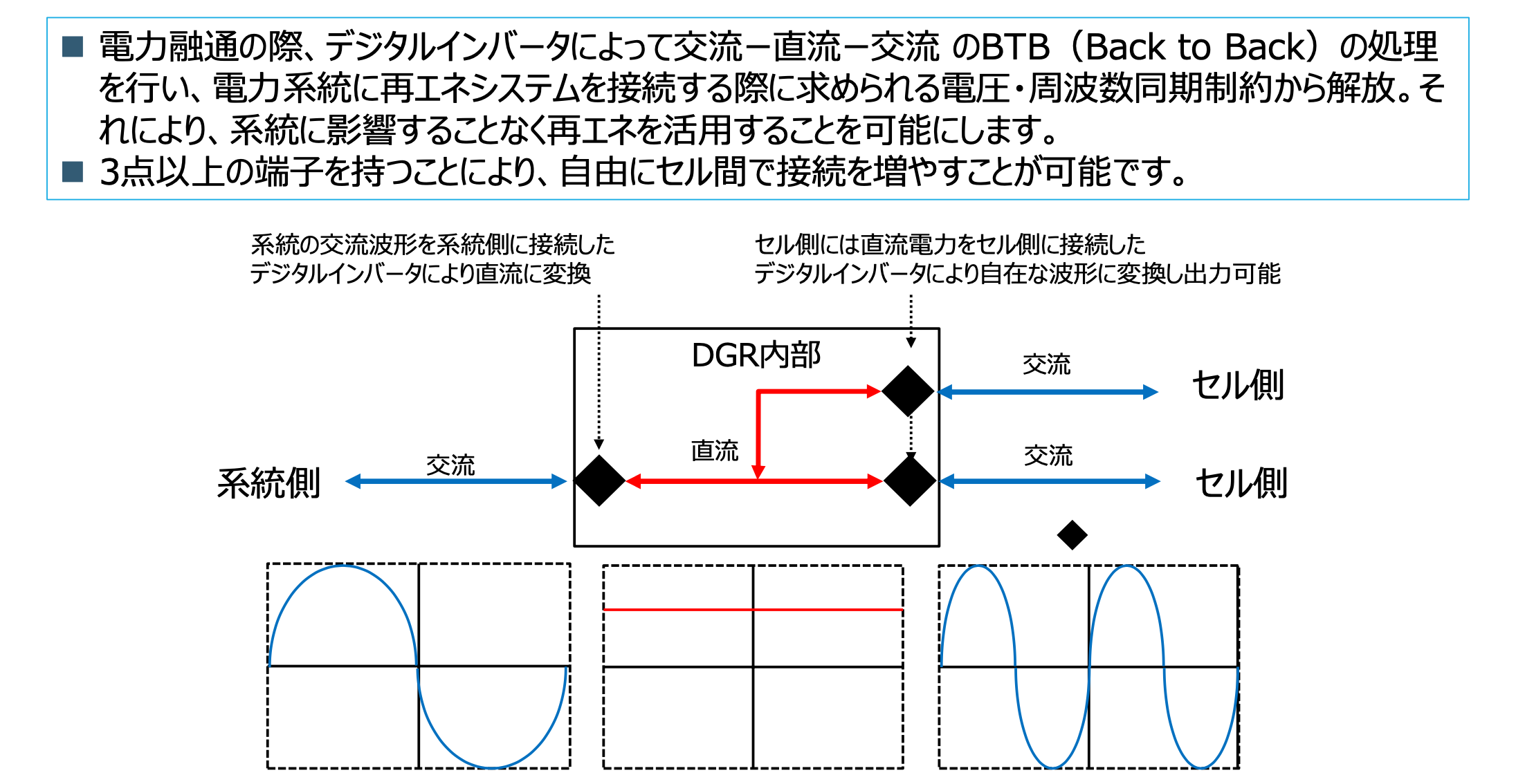 マイクログリッド構築GridForming機能を有するデジタルグリッドルーターDGRを製造販売することで、デジタルグリッド技術による再エネ電源の主力電源化の実現に向け取り組んでいきます