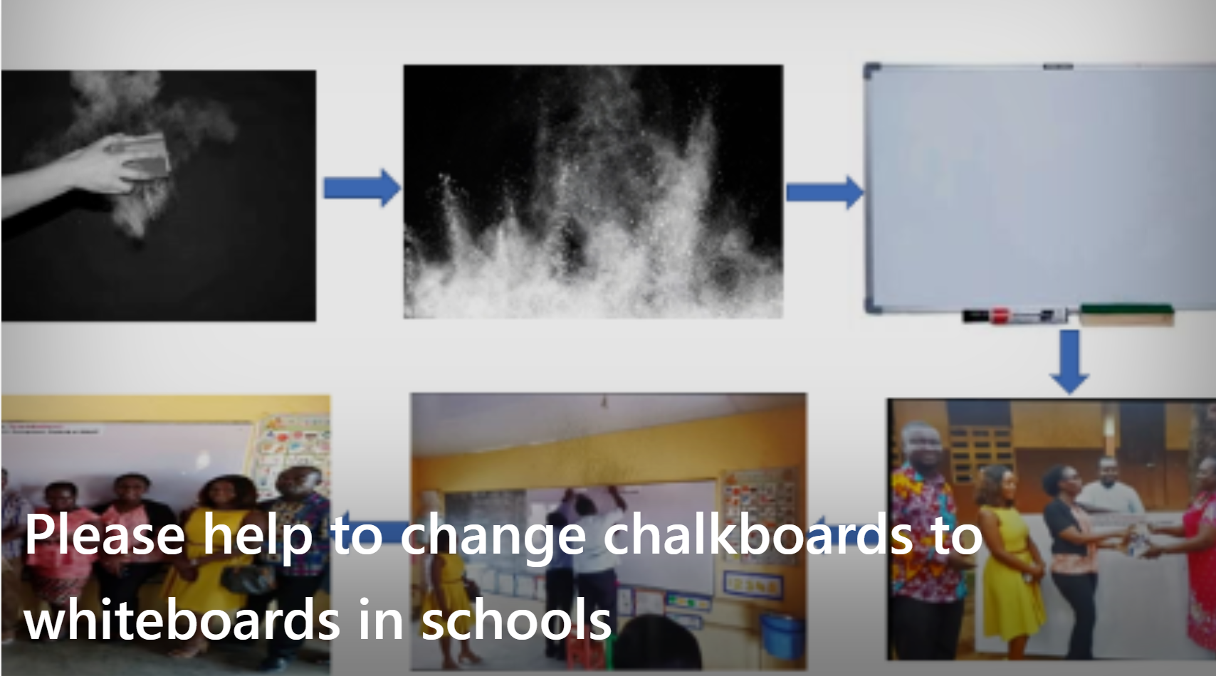 - プロジェクト名:Please help to change chalkboards to whiteboards in schools