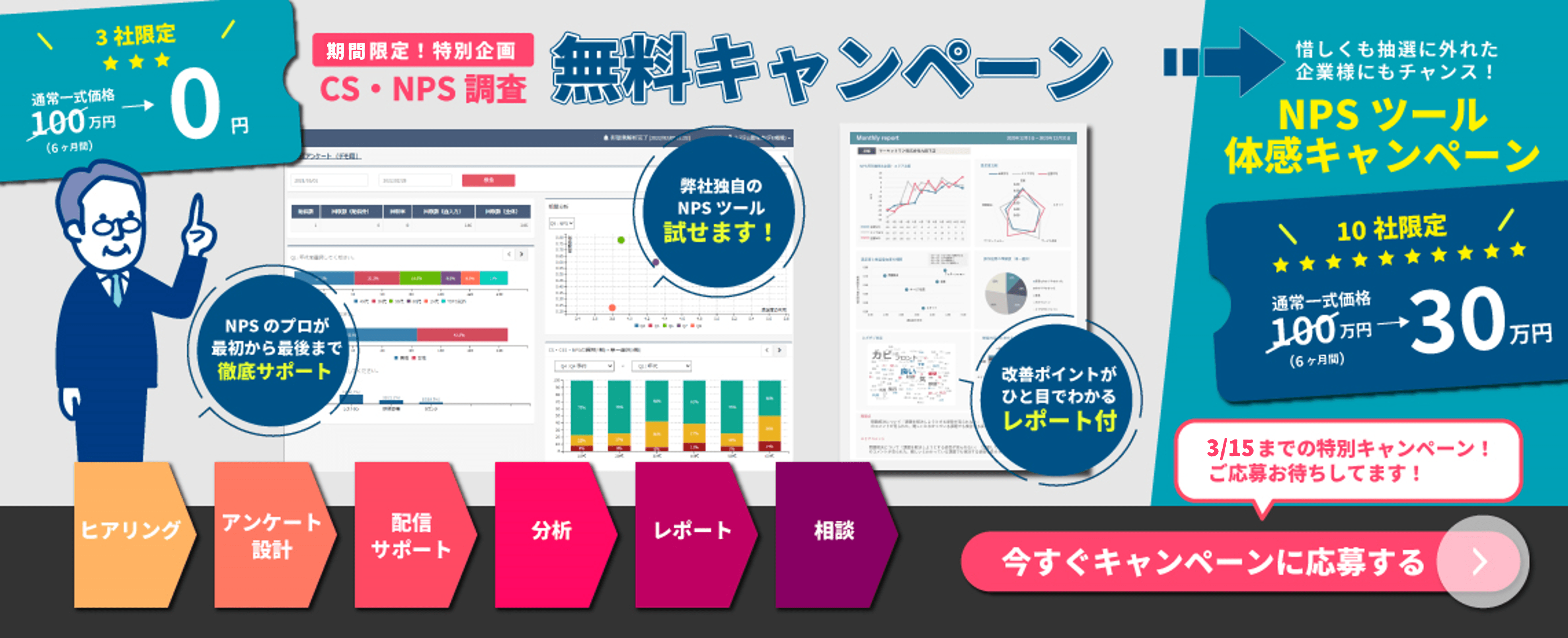 NPS・CS調査"無料"キャンペーン実施中!プロによるアンケート設計から分析・レポートまですべてを0円で提供