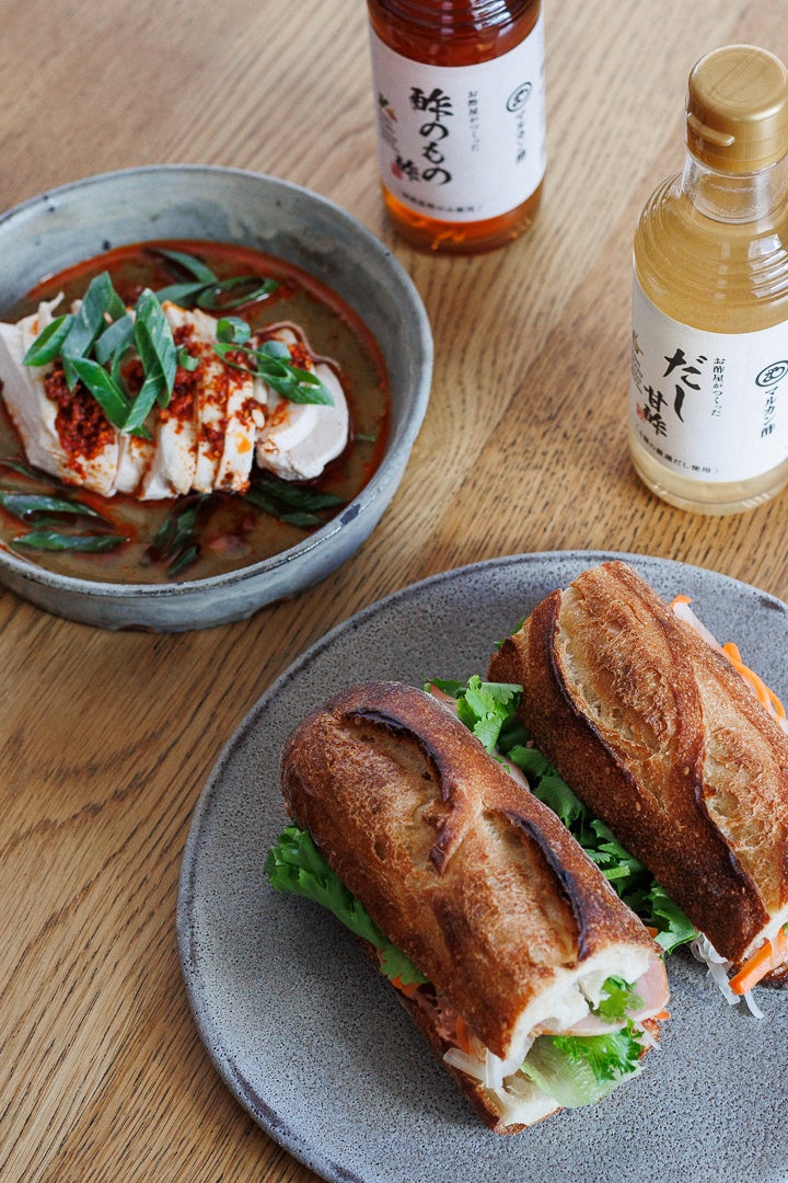 4種類のだしをブレンドし、ほのかな香ばしさや旨み加えました。だしの風味を活かすために米酢を使用。