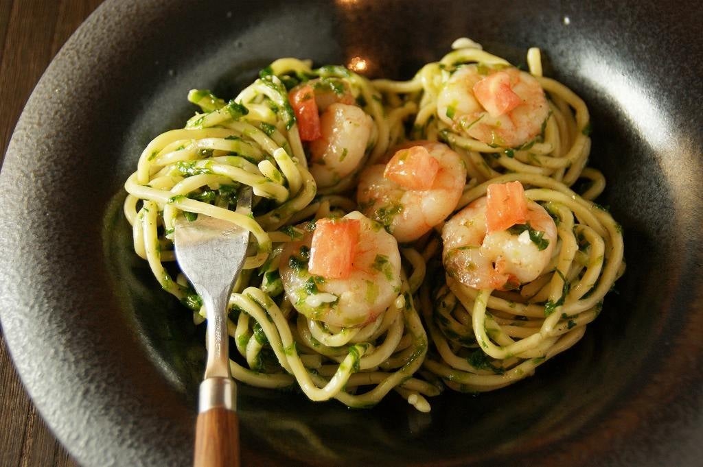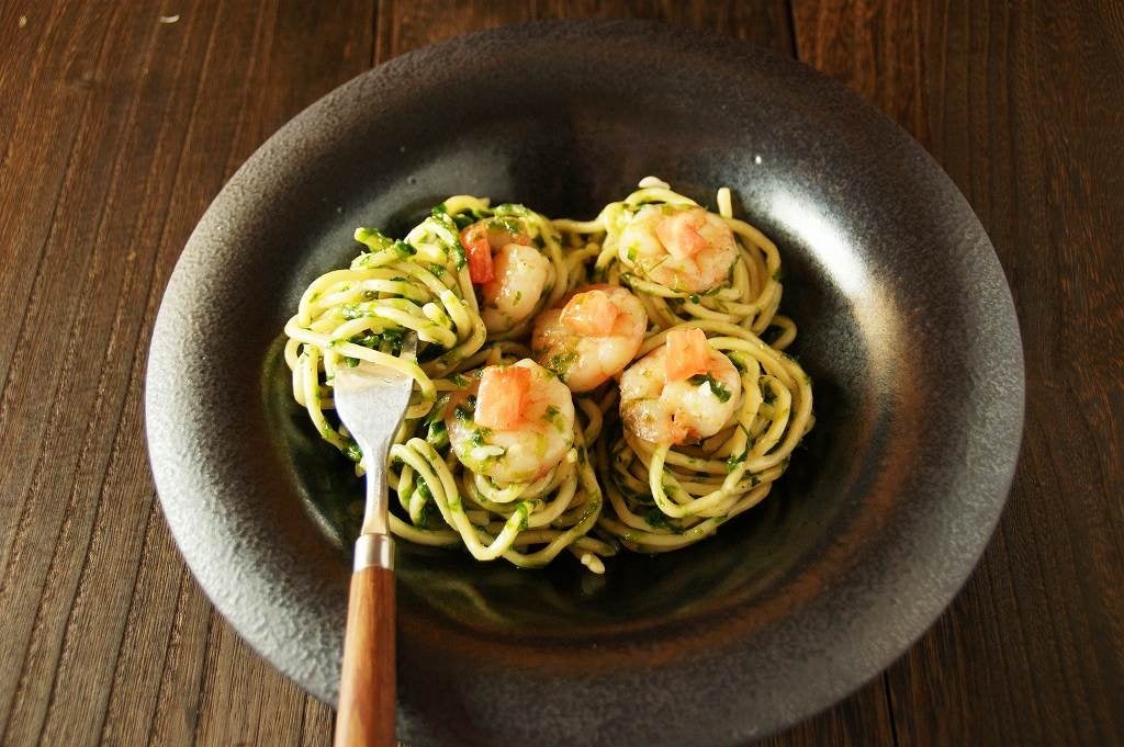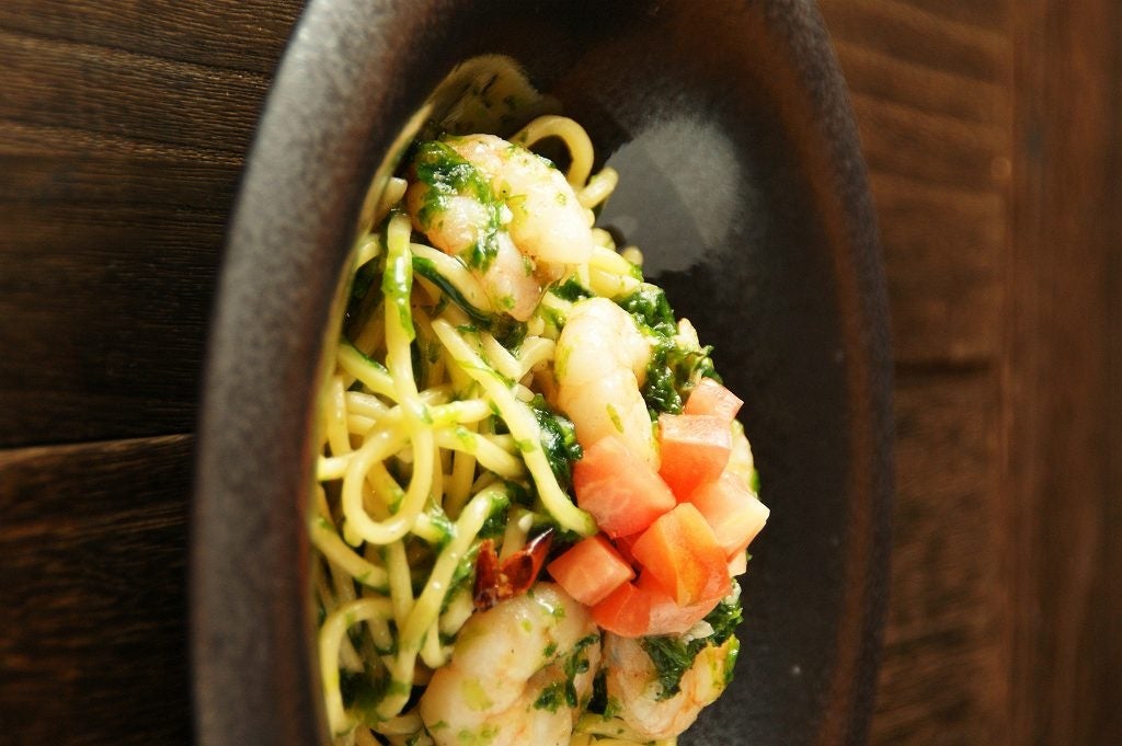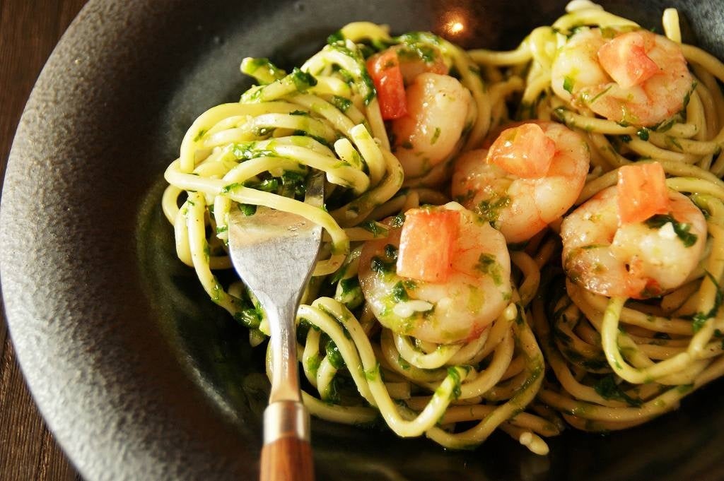 新登場!ぷりぷり海老と青海苔のペペロンチーノ