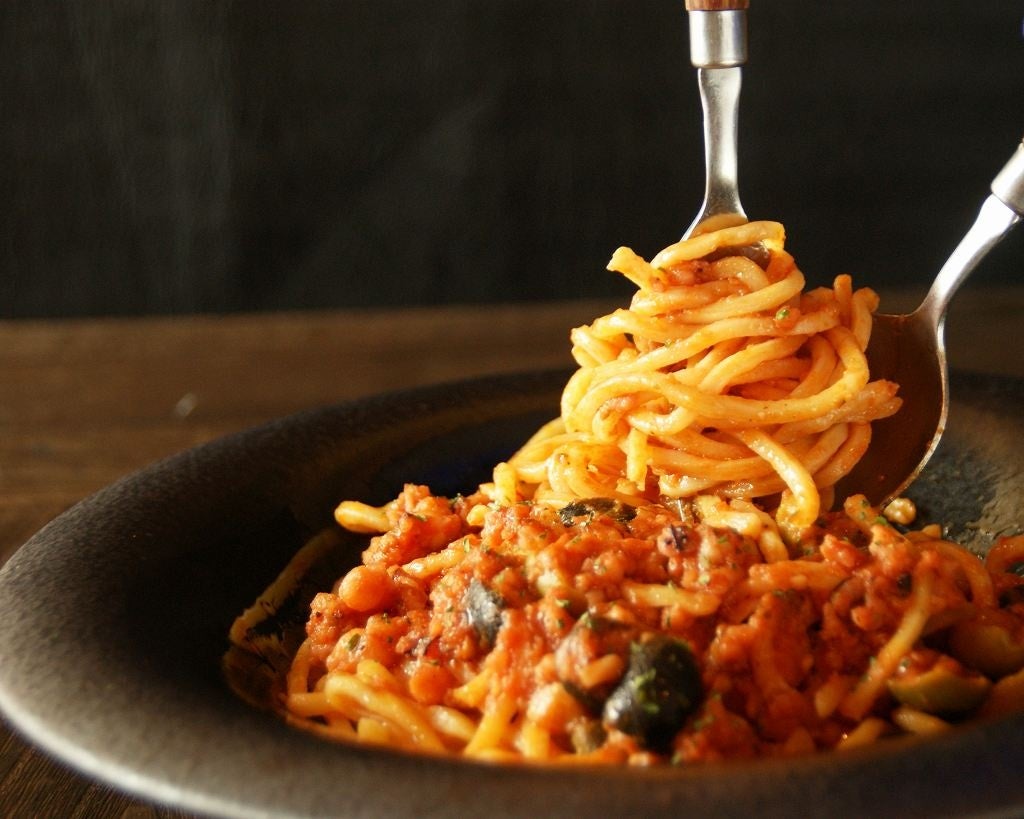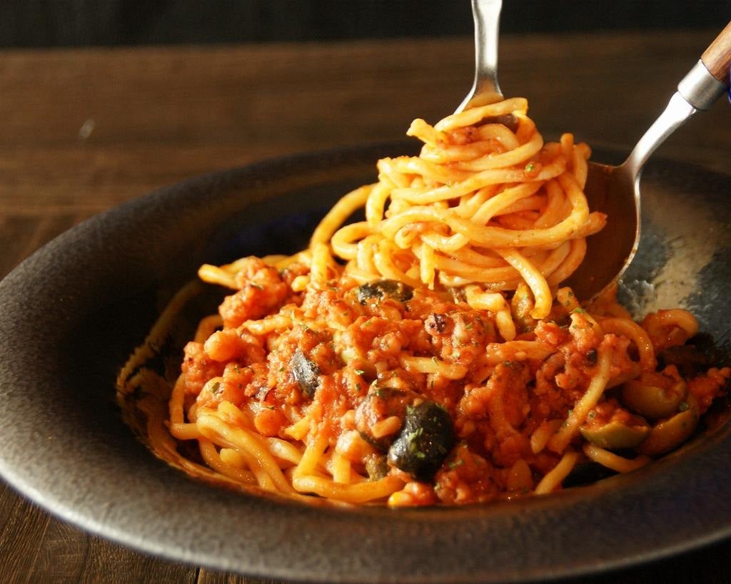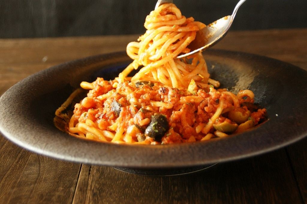 新登場!佐渡直送タコのタプナードトマトパスタ