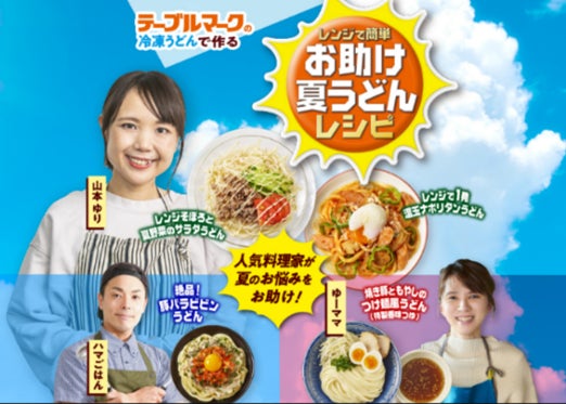 そこで、電子レンジで調理できる簡便性と、様々なメニューに展開できる高いアレンジ性を備えた当社の冷凍うどんで、夏の様々なお悩みを解決すべく、簡単で美味しい「お助け夏うどんレシピ」を、人気料理家の皆様に考案していただきました。また、「お助け夏うどんレシピ」の公開に伴い、夏にオススメのうどんレシピ100レシピを集めた「レンジで夏うどん100 レシピ」も、当社ホームページにて同時に公開しました。
