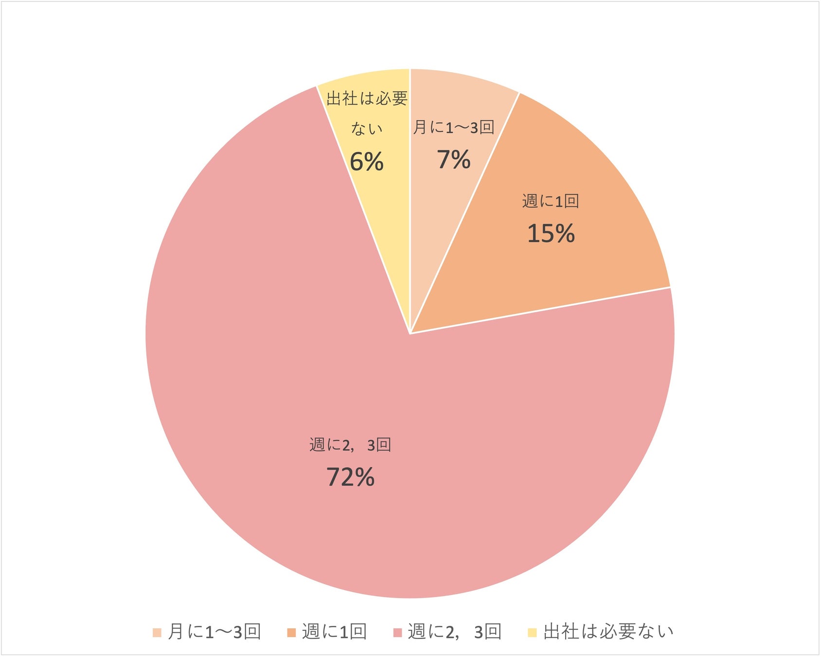リモートワークでの出勤が理想的な条件であると回答した方に対して、さらに「Q8.出社の頻度はどれくらいが望ましいですか?」(n=388)と質問を行った。