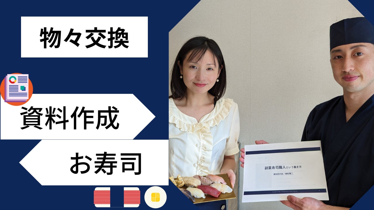 「物々交換」お金だけが価値ではない。資料作成の対価をお寿司のケータリングでいただきました。
