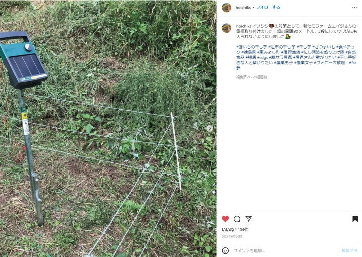・柵は年中設置する予定 イモの残骸を狙って猪が侵入するため