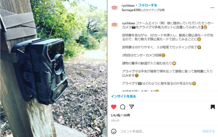 ・センサーカメラは使っていて面白く、動物の様子もわかるので重宝している