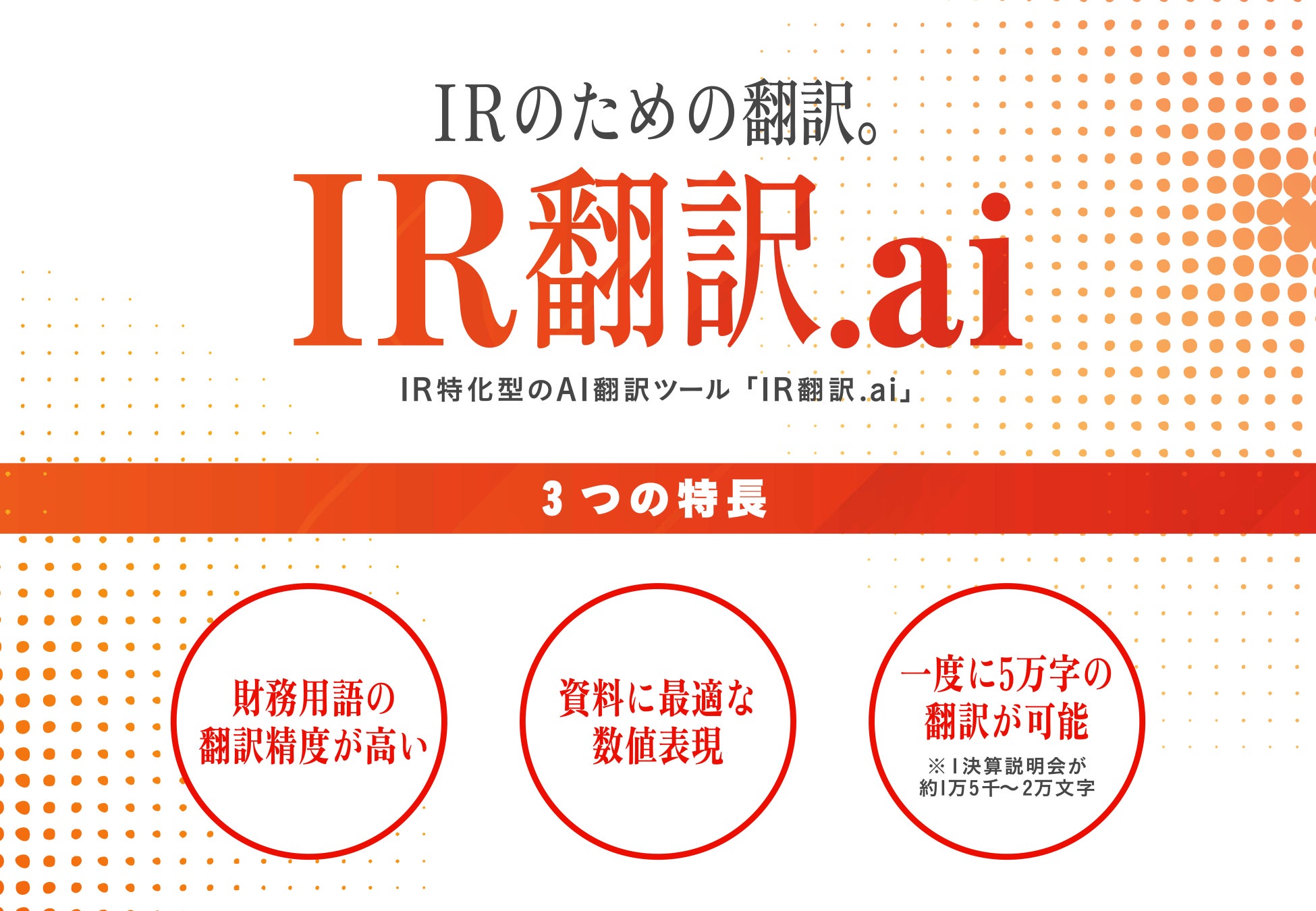 「IR議事録.ai」に搭載された翻訳機能をご利用の皆様から寄せられたご要望をもとに、財務関連文書に特化し、企業独自の固有名詞にも対応可能な高精度のAI翻訳サービス「IR翻訳.ai」が誕生しました。2025年4月から義務化される「プライム市場」における日英同時開示に向けて、IR担当者の業務効率を向上させるだけでなく、関係者の翻訳作業負担の軽減にも貢献します。