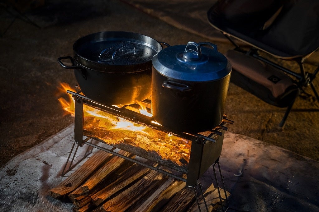 ゴトクを使えば、重量のあるダッチオーブンを使った調理も可能。