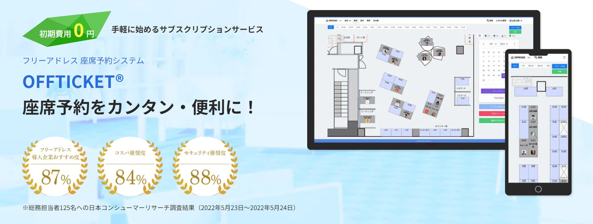 JOPSが2020年から提供しているフリーアドレス 座席予約システムOFFTICKET® は、JOPSが Google Cloud のサービスを利用して開発したシステムです。現在、60社を超えるお客様にご利用をいただいており、「在宅勤務を導入したが、誰が出勤で誰がリモートなのか把握できない」「フリーアドレス制を導入して、どの席に座っていいか迷う」といった課題に対するソリューションを提供し、職場の働き方改革を実現します。