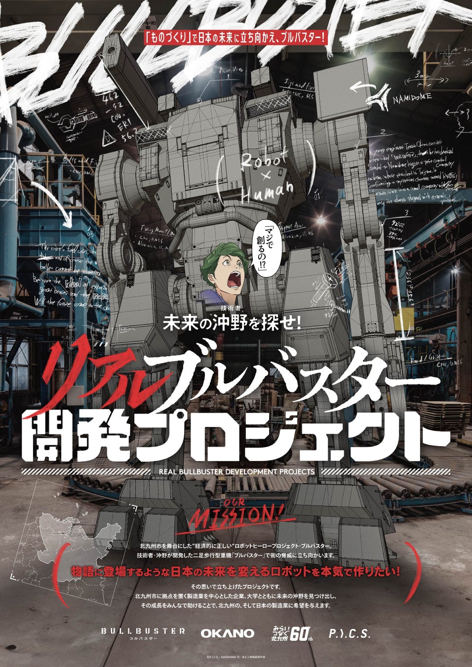 岡野バルブ製造株式会社(本社:福岡県北九州市、代表取締役:岡野武治、以下「岡野バルブ製造」)は、日本のロボティクス、製造業を盛り上げることを目的に、北九州を舞台にしたロボットアニメ『ブルバスター』との連動企画「リアルブルバスター開発プロジェクト」を実施中です。この度、本年3月より実施しておりました若手技術者オーディション「未来の沖野を探せ!開発者オーディション」の合格者が決定し、ロボット開発がスタートしたことをお知らせします。