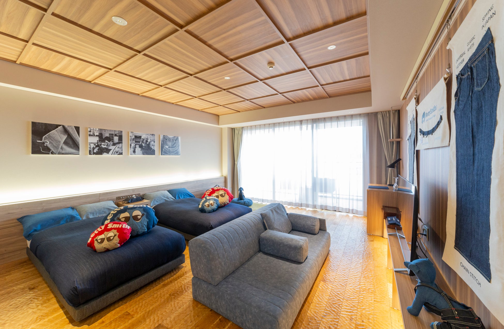 岡山に訪れてくれた旅行者の方々に、ただ宿泊するだけでなく「地元の文化やライフスタイルを深く感じてもらいたい」「ワクワクした旅をしてもらいたい」という想いから、デニムの聖地である児島のデニムメーカー『BettySmith』協力のもと、岡山ならではの『デニム』をテーマにしたコンセプトルームプランが生まれました。