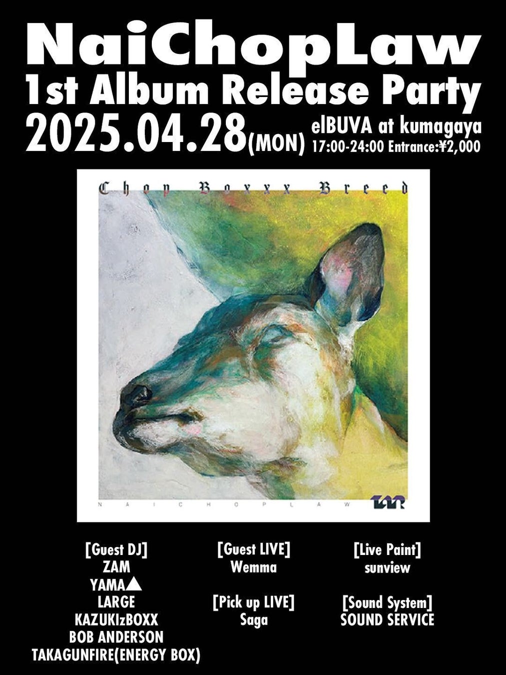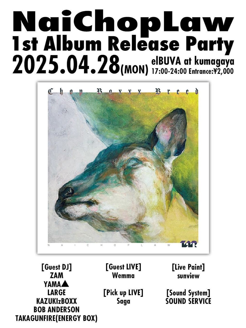 1st LP「ChopBoxxxBreed」のリリースを記念して、2025年4月28日(月)に 熊谷市elBUVAにて、リリース記念パーティも開催します。