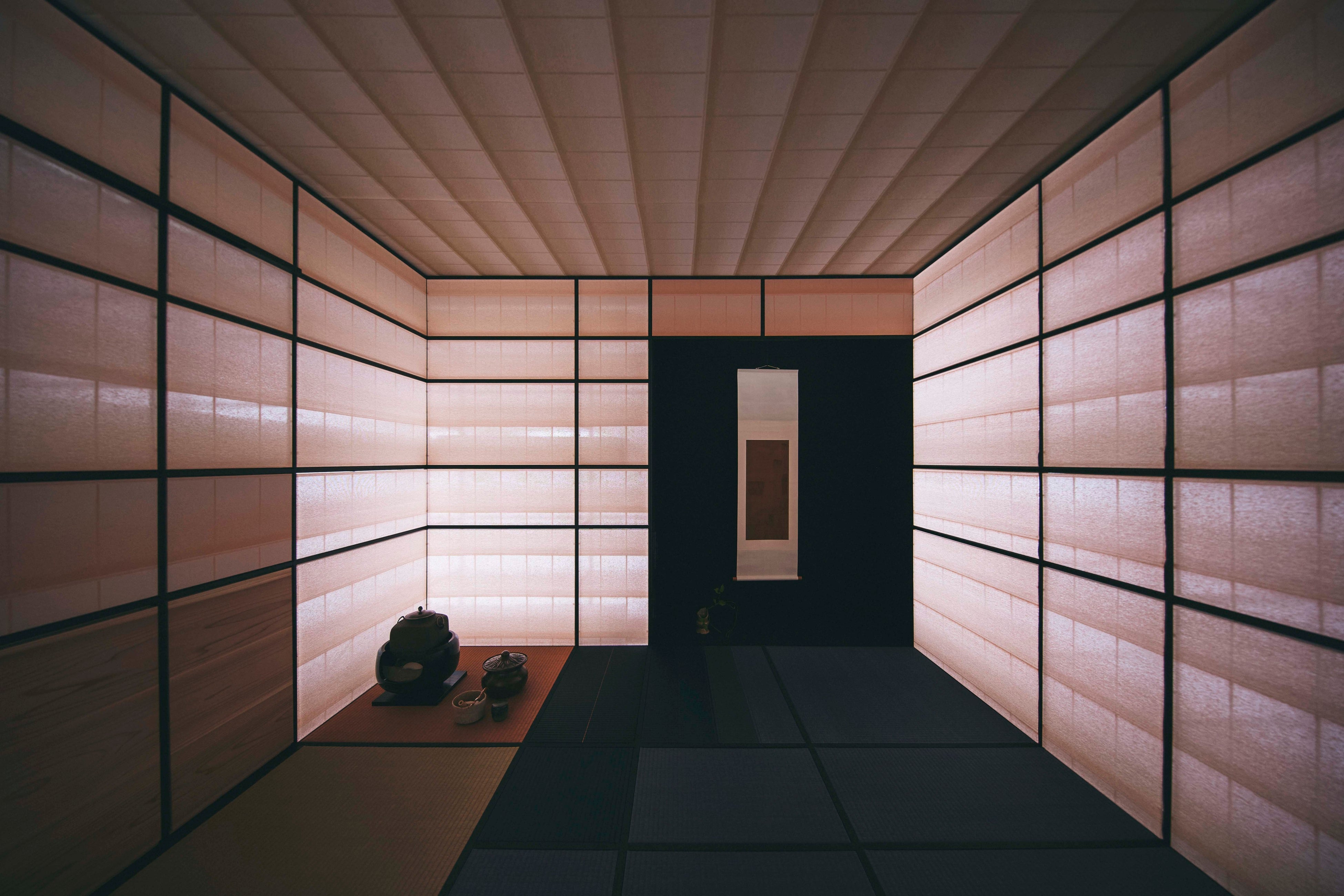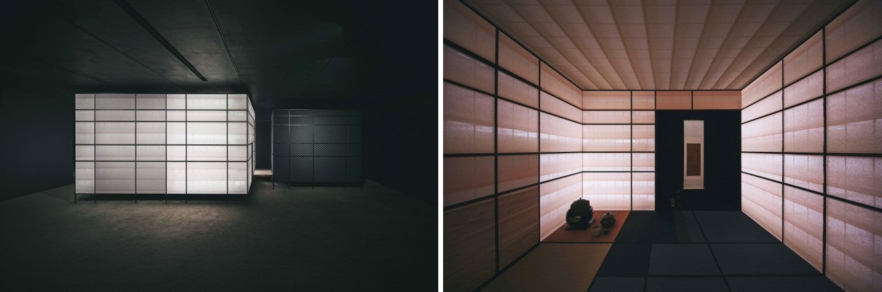 また、10月8日(火)~11日(金)の期間「La Main (The Hand)」5Fフロアでは、アポイントメント制にて現代的な茶室「織庵」をご覧いただけます。本茶室を囲む織物は、西陣織の伝統的な織りの技法である「紗」の技術を応用した、日本古来の「障子」のような独特の透け感のあるテキスタイルが使用されています。「織庵」は、空間を囲うことで人々が寄り合う場を形成していた茶室のルーツに立ち返り、現代建築における文脈で再解釈されています。