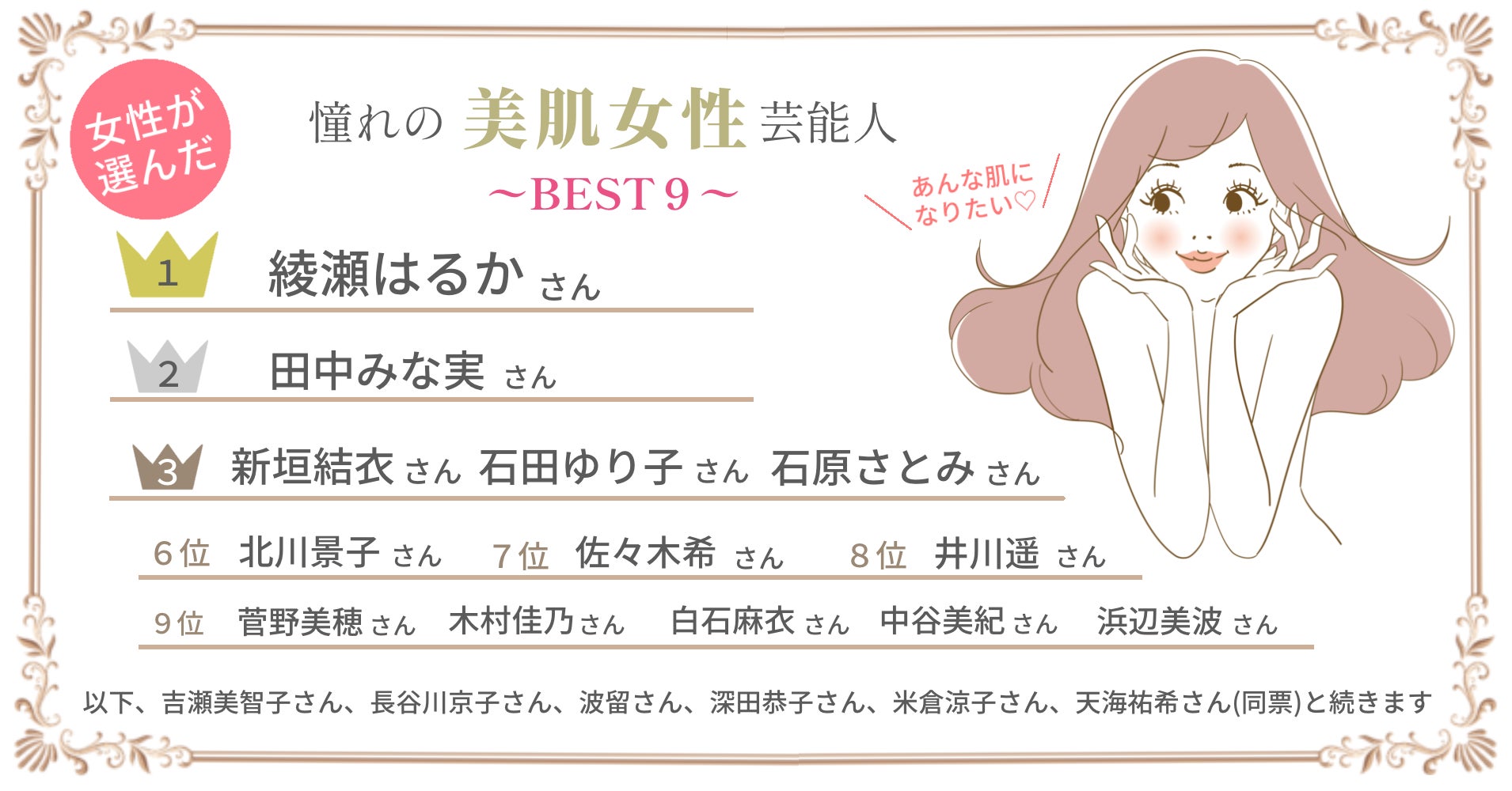 - あなたのなりたい肌は? 憧れの女性美肌芸能人ランキング