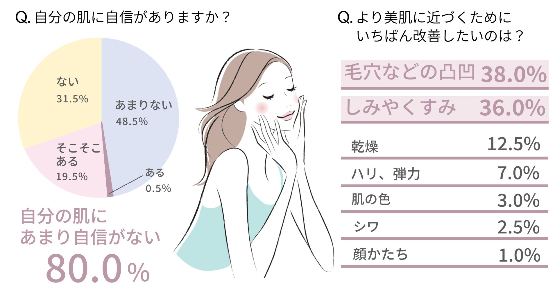 - 自分の肌に「自信がない」女性は80%。いちばんの悩みは?