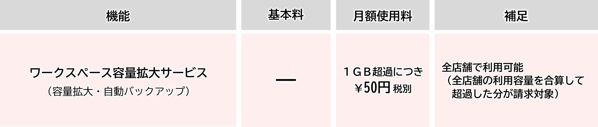 ワークスペースの容量は登録工場(会社)ごとに無料で5GB(※)提供しております。無料枠を超過した分の使用料は以下の表の通りです。
