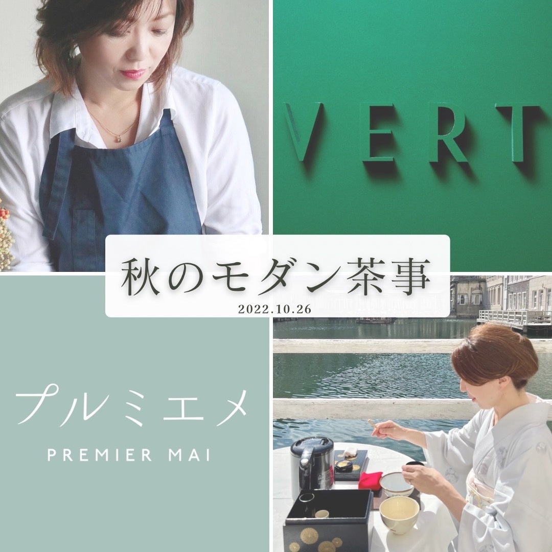 茶の湯において懐石、濃茶、薄茶をもてなし、本来4時間ほどの構成からなる「茶事」を、本イベントでは「モダン茶事」と題して90分にアレンジし、プルミエメの縁側や個室を茶室に見立てるなど趣向を凝らし、お席を立って移動していただきながら秋の夕暮れから夜のひとときをお過ごしいただきます。料理家 安藤千英氏によるカジュアル懐石や、茶道家 石川恭子氏による茶箱点前、VERTによるお懐紙でいただくフルーツ羊羹、プルミエメのお箸でいただくクレープなど、それぞれが専門分野を生かし現代の暮らしに合わせてモダンテイストにアレンジすることで、茶道未体験の方、和の食文化にご興味のある方、スイーツ好きの方など、年齢問わず幅広い層のみなさまにご参加いただける会を予定しております。