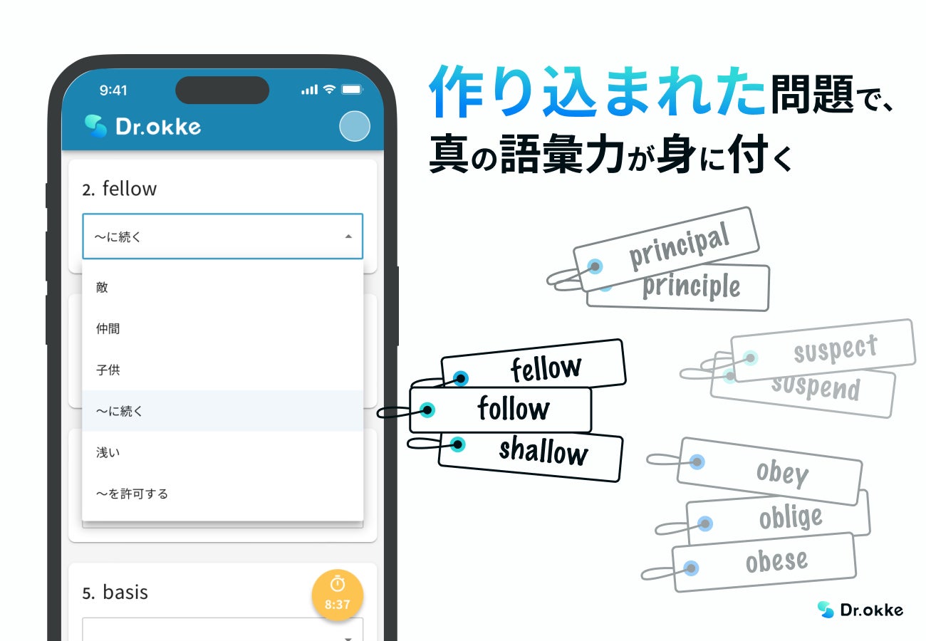 テスト作成ツールであるDr.okkeでは、これまで高校範囲の数学・英文法・化学基礎に対応してまいりましたが、多くのご要望を頂いていた「英単語」のコンテンツを新たにリリースしましたので、今回ご紹介いたします。