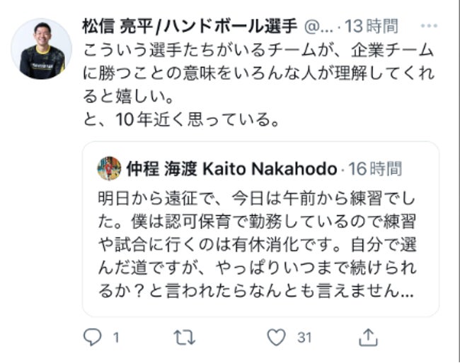 プロスポーツ選手の多くは、競技以外の仕事をして生計を立てています。試合や遠征のために有給休暇をとったり、理解ある職場を探すことに苦労するなど、その両立に苦しむ選手は少なくありません。