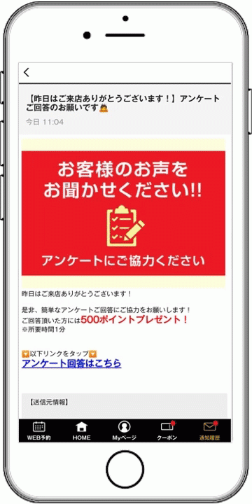 そして、飲食店は回答してくれたお客様には特典をつけてあげる。そして、スマホで手軽に回答ができるようにしてからお願いすることで、より多くのお客様の声を集めれらるようになります。
