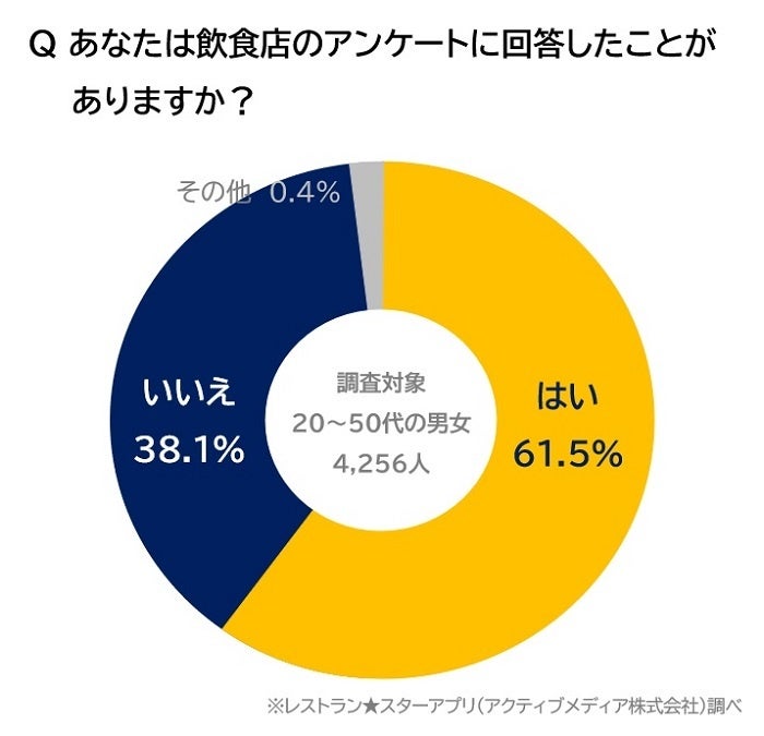 飲食店がアンケートに回答した経験のある人は61.5%。