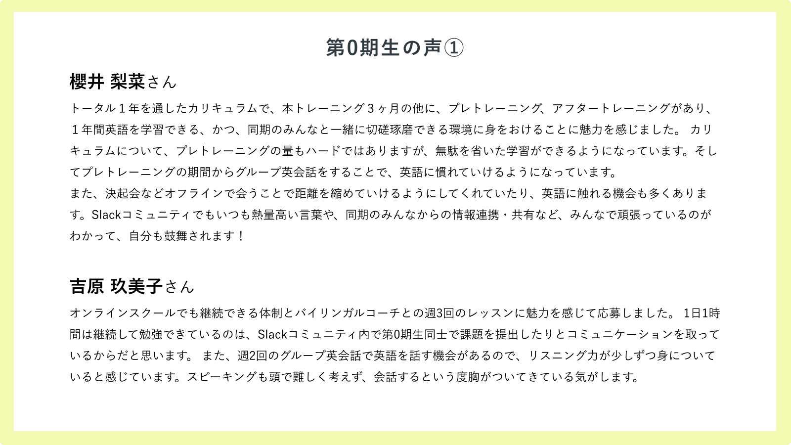 ■受講生(第0期生)の声