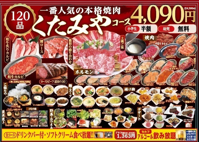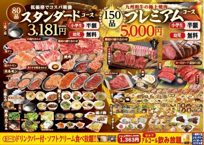 スタンダード食べ放題コース(120分)税込3,500円〜小学生は全コース半額、幼児は無料です。