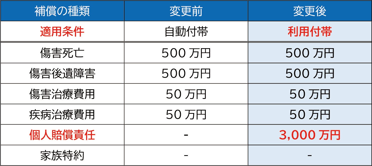 また、個人賠償責任補償 3,000万円を追加いたします。