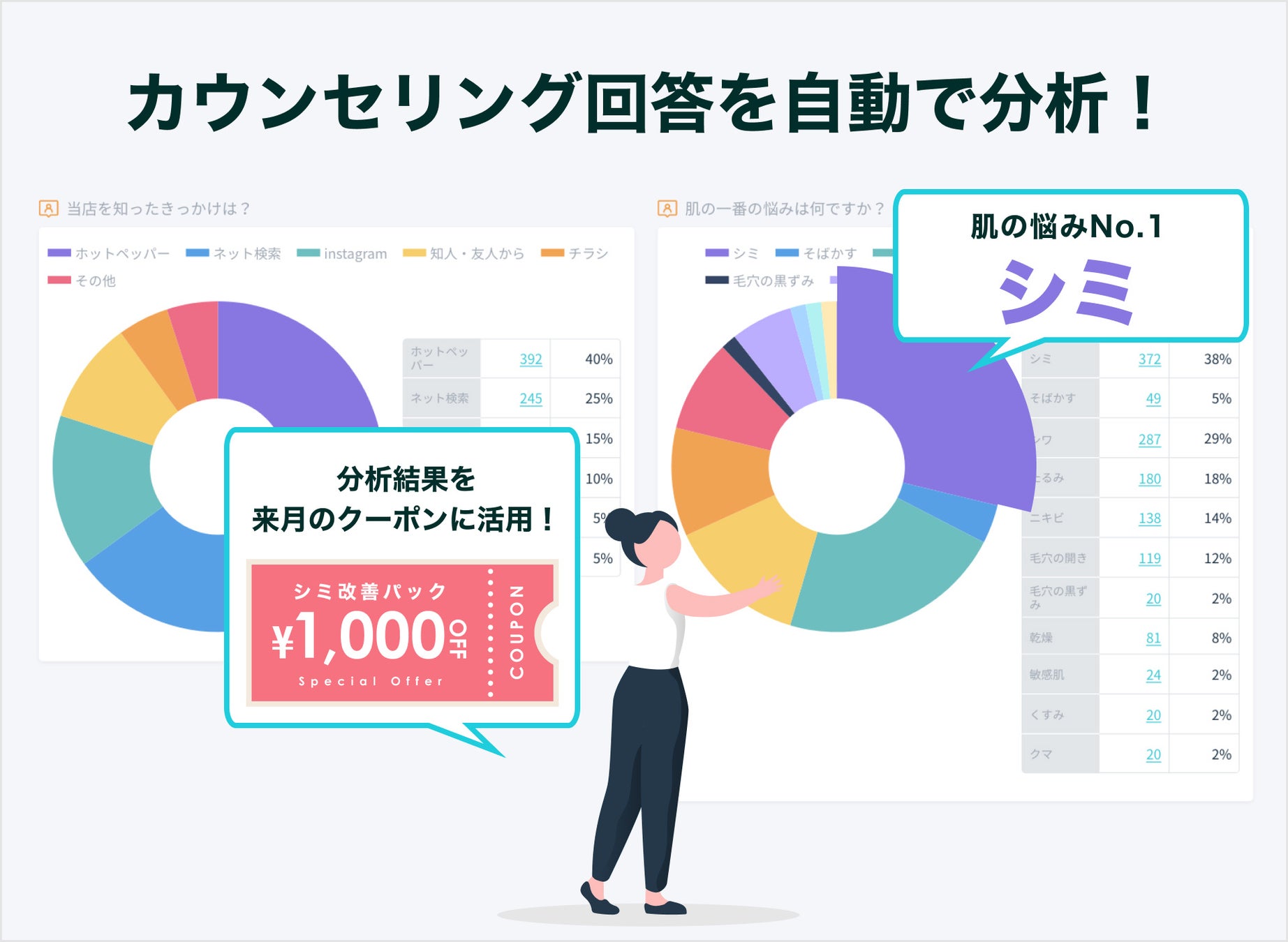 サロン独自の質問を自由に作成でき、入力データはすべて自動で集計されます。