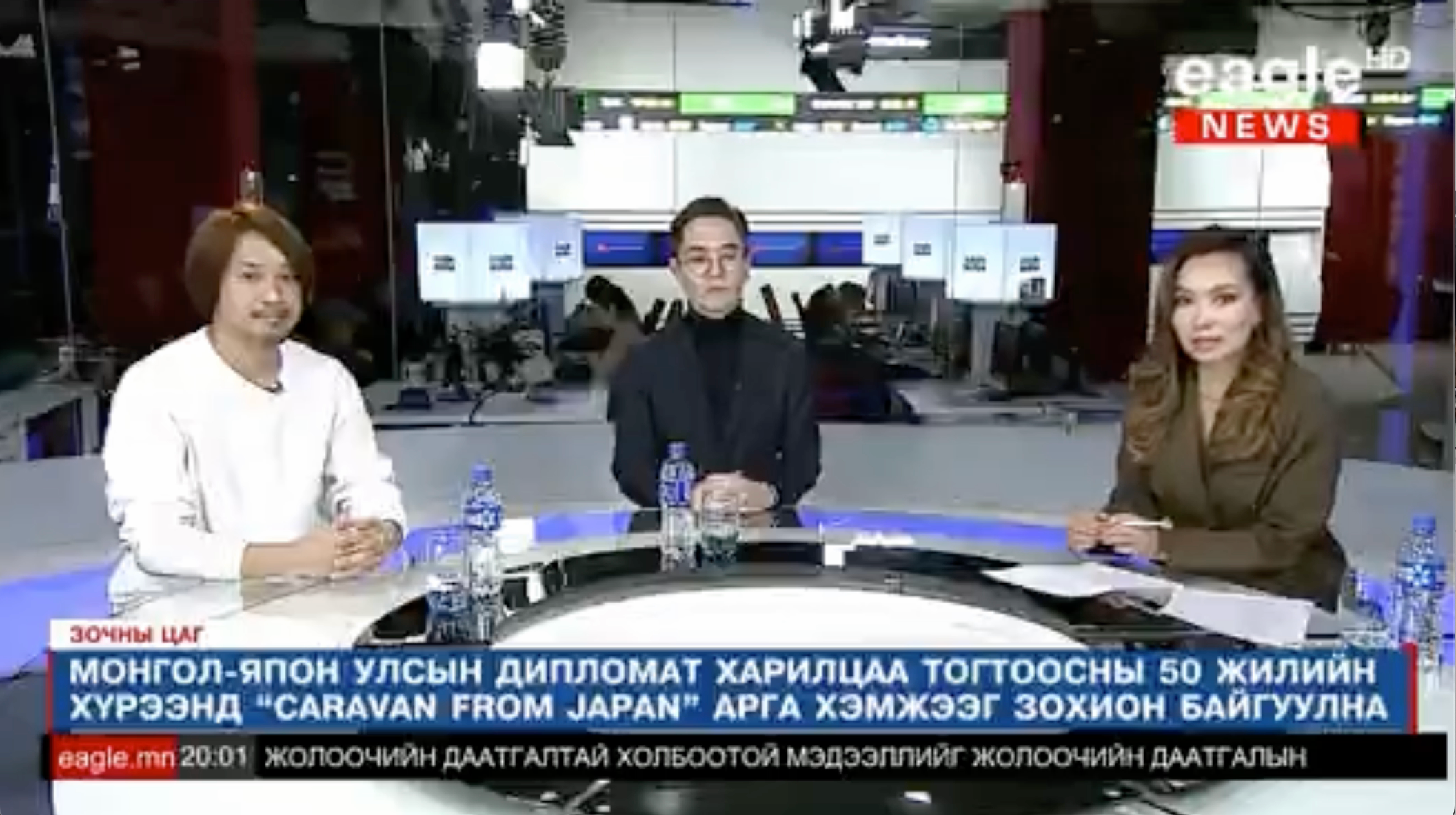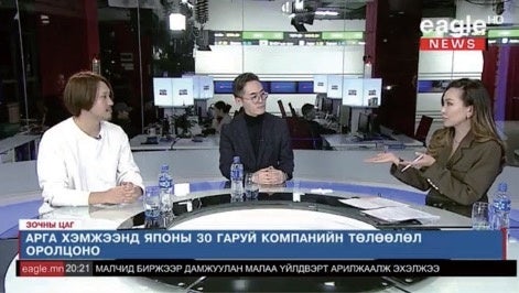 また、開催前から各種モンゴルメディアから取材を受け、現地TV番組「eagle NEWS」では30分に渡り、スタジオで特集が組まれ、弊社代表亀井がインタビューに答えました。