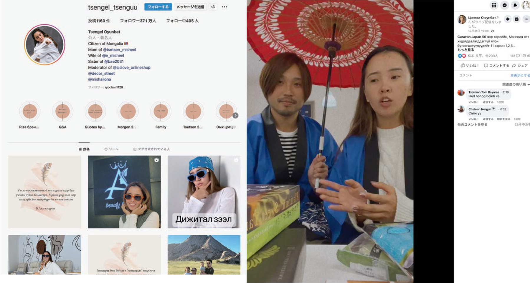 特にモンゴルの方から絶大な人気を誇りInstagramフォロワー数約37万人のTsengel OyunOyunbatさんのInstagram LIVEにて弊社亀井も出演し、日本製品の紹介を行うなど、開催前から数日にわたりで様々なメディアで日本のポップアップストアが紹介され、話題となりました。