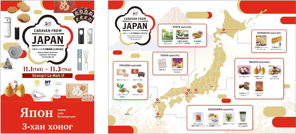 日・蒙国交50周年を記念して、モンゴル・ウランバートルの中心シャングリラモールにて期間限定の日本商品ポップアップストアを開催。モンゴルの皆様へ、両国のさらなる発展と良好な関係構築に思いを込め、日本により親しみを持っていただけるよう日本の日用品や食品等の商品をご紹介。本ポップアップストアの開催を通じてモンゴルの方々支持していただける日本商品のカテゴリを模索するなどテストマーケティングとしても活用。