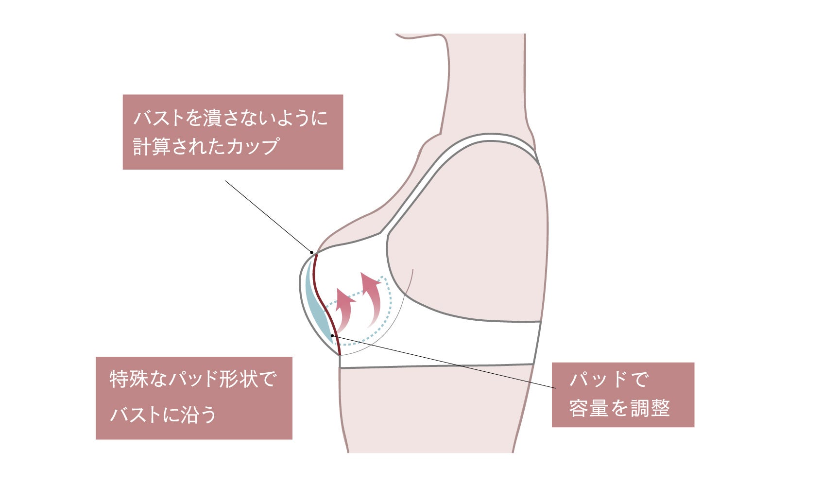 - バストを潰さない計算されたパッドで自胸をやさしくボリュームアップ
