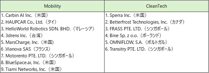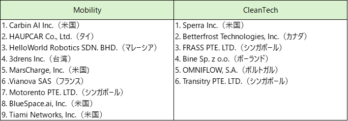 本プログラムの一環として、モビリティ領域(Mobility)と環境領域(CleanTech)の海外スタートアップ15社によるピッチイベントを開催いたします。 海外スタートアップとの連携に関心のある大企業、VC/CVC、金融機関等、様々な方のご参加をお待ちしております。本イベント後、ピッチの内容に興味を持たれた海外スタートアップとの個別マッチングについて事務局がサポートいたします。