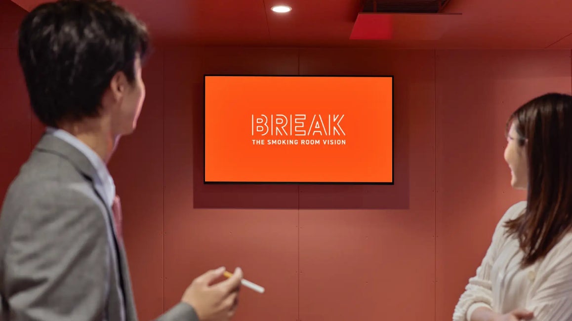一方、「BREAK」は、国内主要オフィスビルを中心に設置された喫煙所デジタルサイネージメディアとして、首都圏のビジネスパーソンにリーチできる国内No.1のメディア(※1)。
