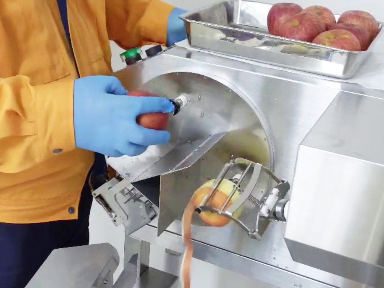 自動排出機能(イジェクト機能)により1,200 個 /1 時間の処理性能を実現、大量生産に特化した工場様向け皮むき装置です。今まで皮むきが難しかった変形したリンゴも綺麗に皮がむけます。山梨県、山形県の洋菓子向けリンゴ加工場では最大100トン/月の生産に貢献しております。