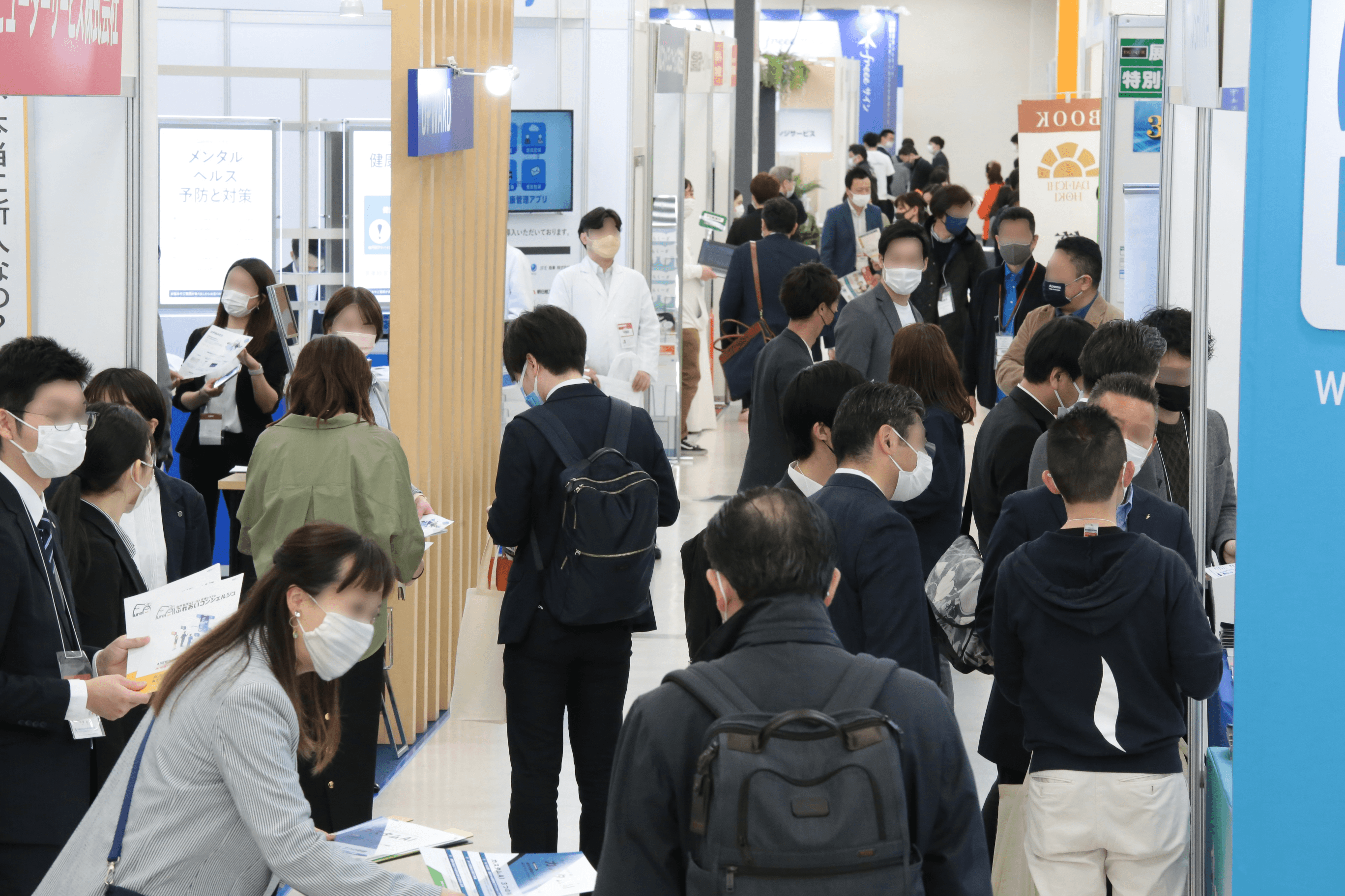 展示会には、労務・管理システム、経理・会計システム、働き方改革ソリューション、健康経営、福利厚生など