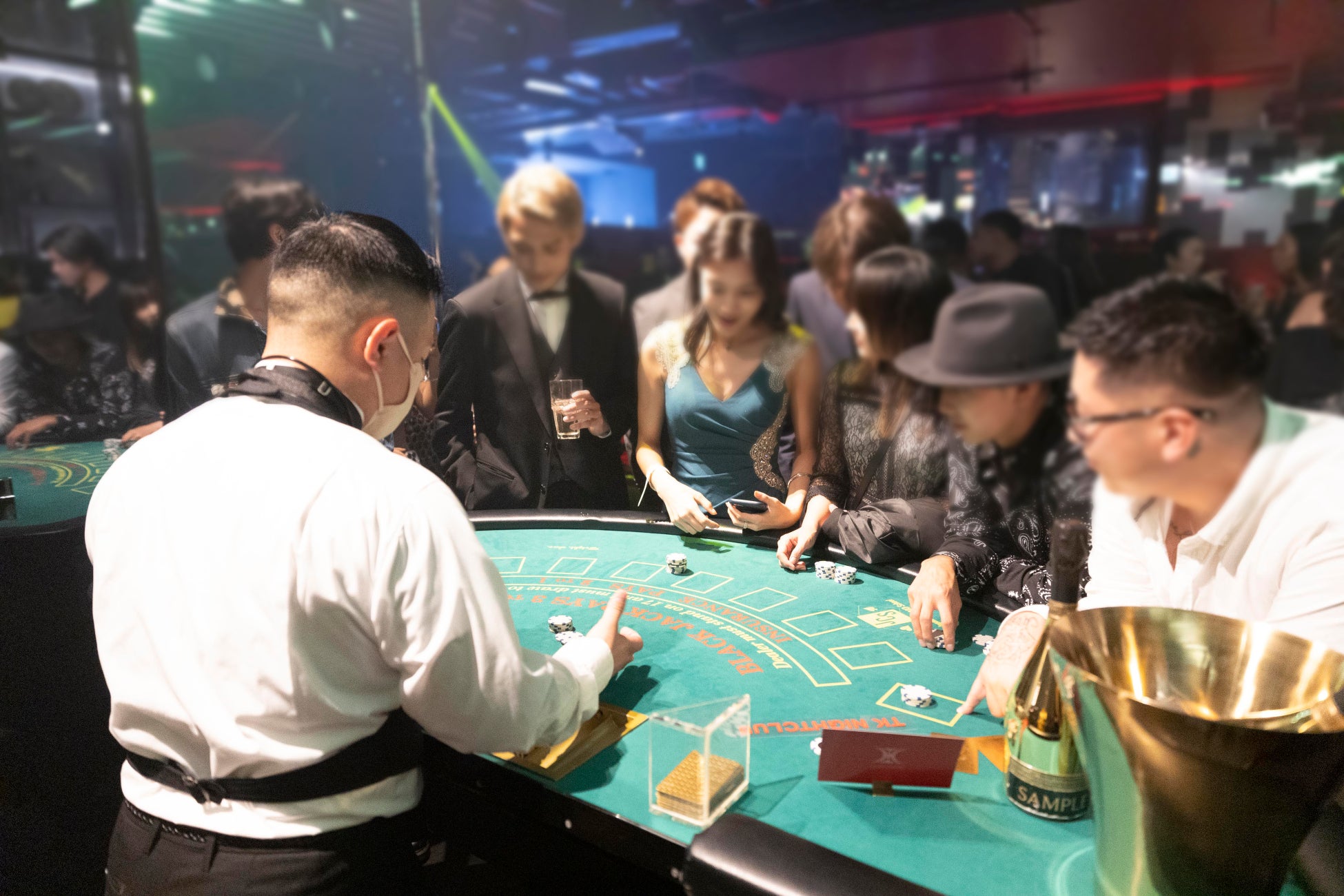 また、広々としたスペースを生かして、当日はラスベカスをイメージした、カジノ体験、ポールダンスや、ゆったりとお過ごしいただけるラグジュアリーな空間など、一夜限りのスペシャルデコレーションでお迎え。普段のTK NIGHCLUBの雰囲気とは少し異なる、贅沢かつ豪華で大人な空間に仕上げ、非日常的な体験へと誘いました。