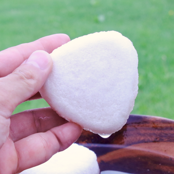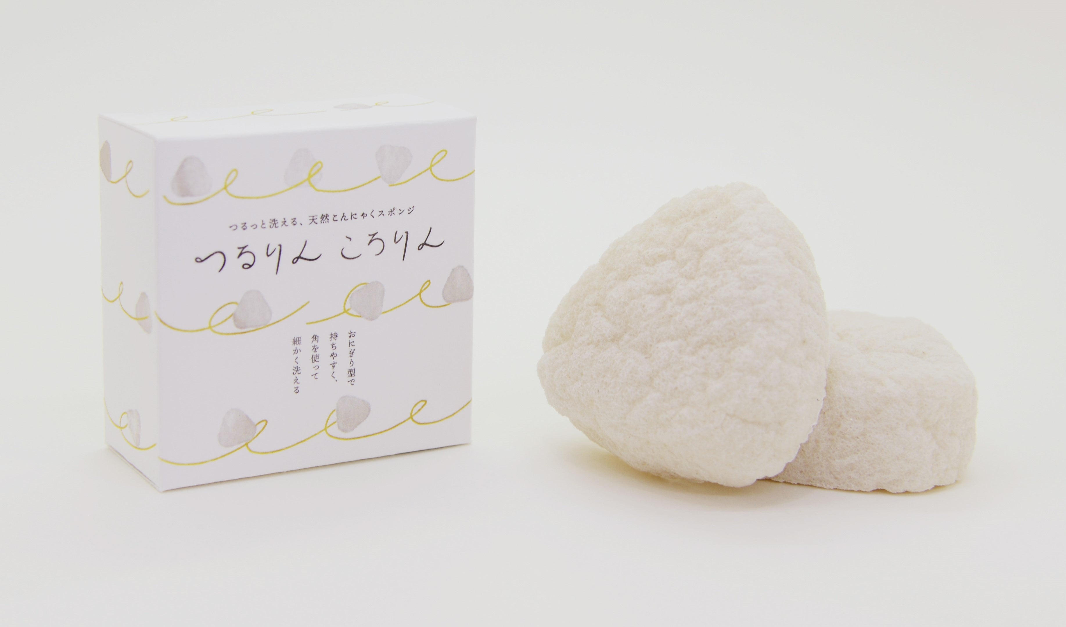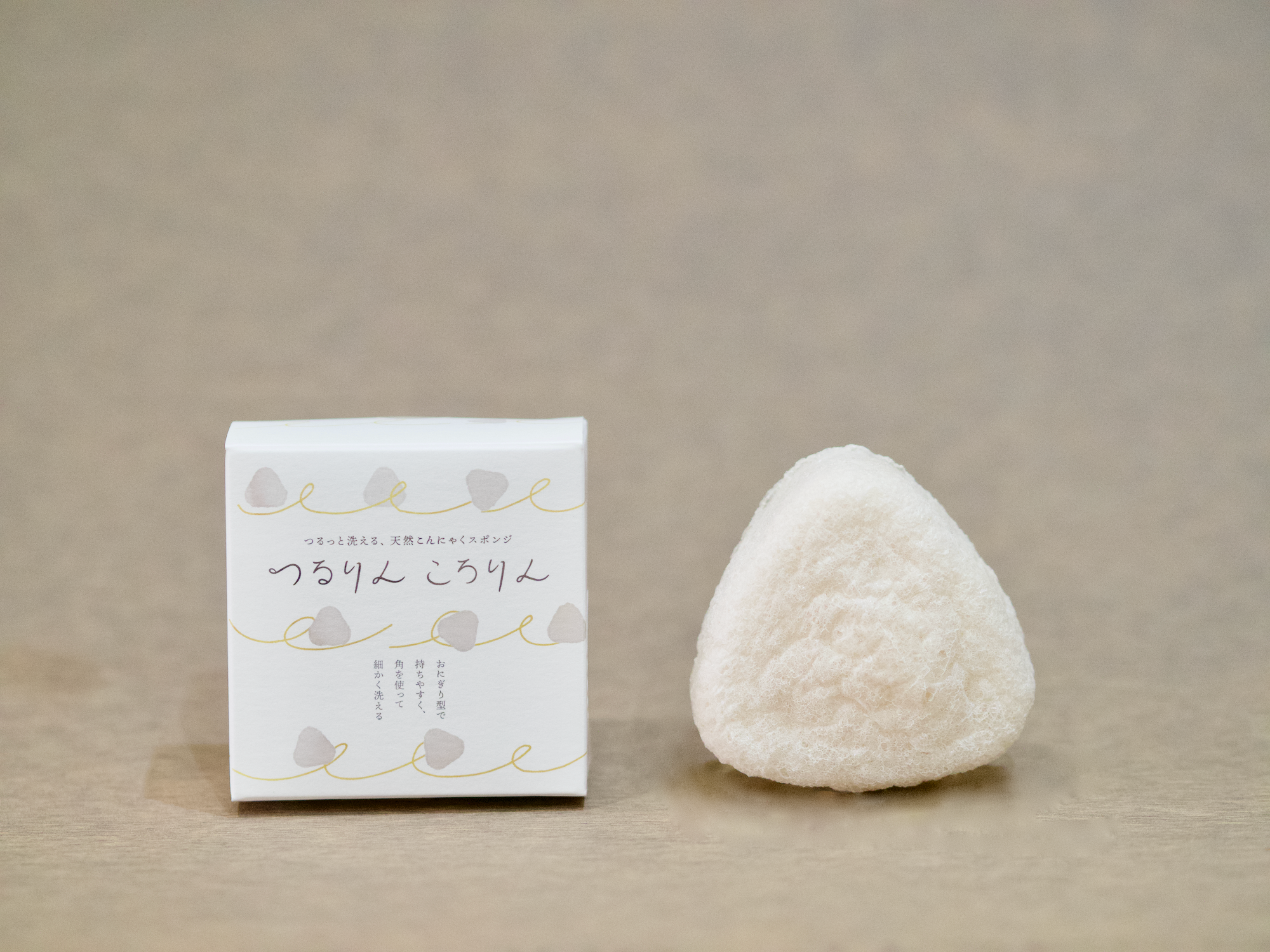 毎日、母がにぎったおむすびを持ってこんにゃくの製造工場に出掛けていた父。その姿を見て身近な存在の温かさから生まれた『つるりん ころりん』。日本人全体の9割以上が“好きだ”という調査結果も出ているおにぎりを、誰もが毎日使えるこんにゃくスポンジに。三角形は持ちやすく、角が肌の細部までフィットし、気になる毛穴汚れや余分な角質にアプローチ。お子様から大人まで男女問わずにプレゼントにも喜ばれる安心感のあるフォルムです。