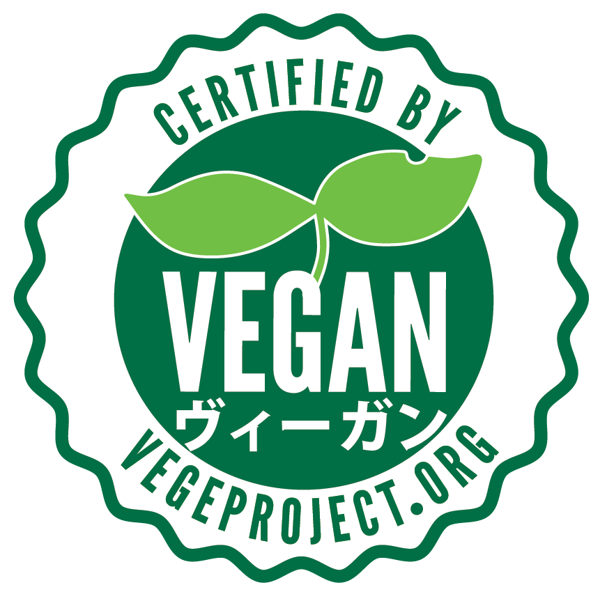 ヴィーガンマーク:特定非営利活動法人ベジプロジェクトジャパンが設定する審査基準に沿い、動物性の原料を使わず天然由来成分のみでつくられ、動物実験も行わない、ヴィーガン認定マークを受けた商品です。