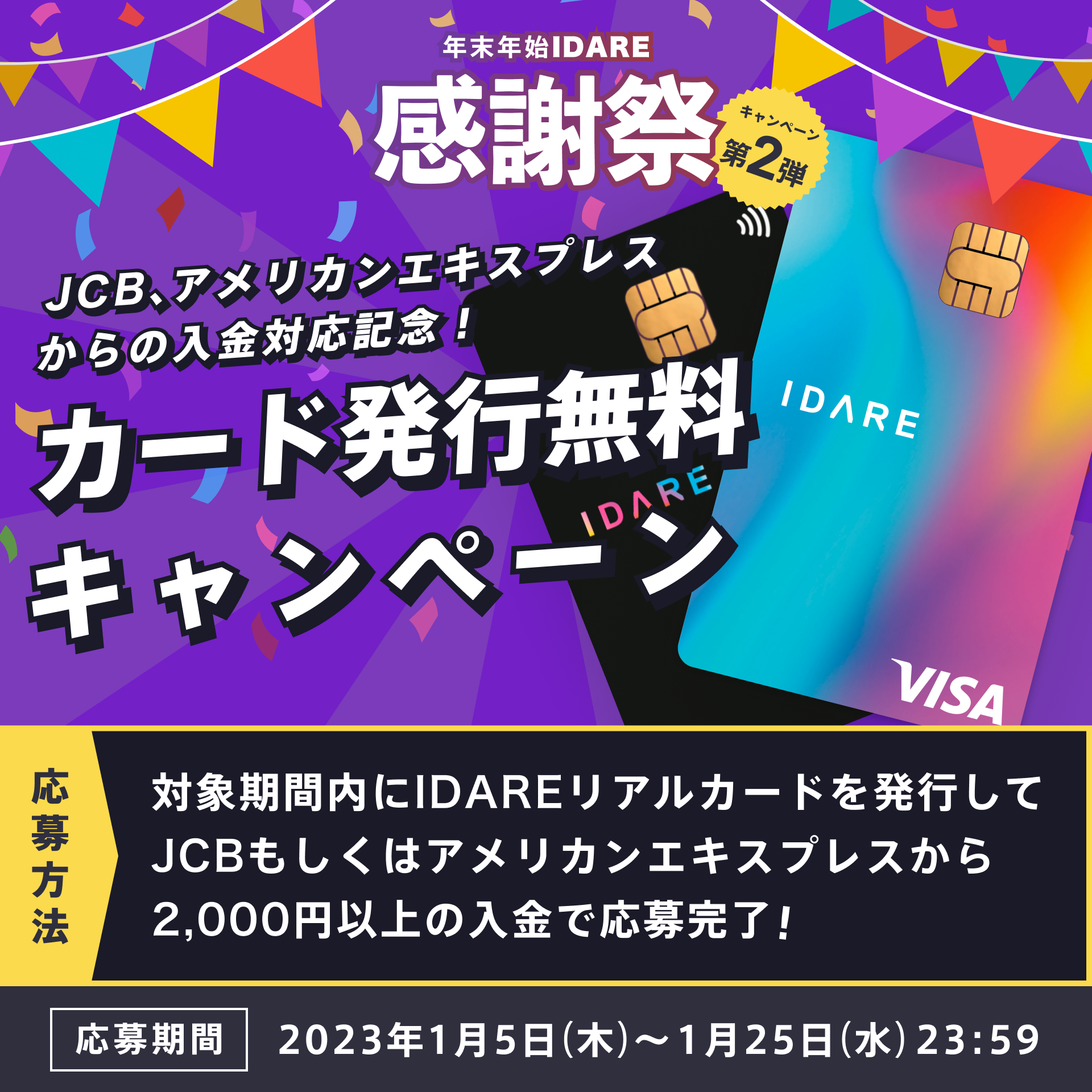 ② JCB もしくはアメリカンエキスプレスから2,000円以上の入金