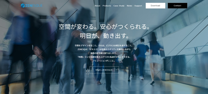 ZENESQUE(ゼネスク)とはニューノーマルな時代に向けた、セキュリティシステム関連製品を提供するブランドです。新しい時代に向けてオフィスの在り方や働き方が大きく変化しており、セキュリティもその変化に合わせた新しいシステムが必要となっています。