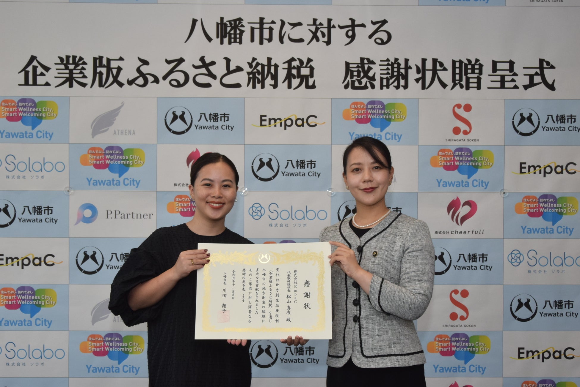 今回の寄付に至った背景として、EmpaCの代表である松山は20代で女性の経営者です。また、八幡市の市長は歴代最年少で、女性として市を率いています。お互い同じ女性であることからシンパシーを感じ、弊社としても八幡市の取り組みを応援したいという思いから、今回の寄付に至りました。是非とも弊社のSNSにおける専門知識を活用して地域経済の活性化や地元資源の魅力を引き出すことで、八幡市の持続可能な発展に貢献したいという思いから寄付をさせて頂きました。