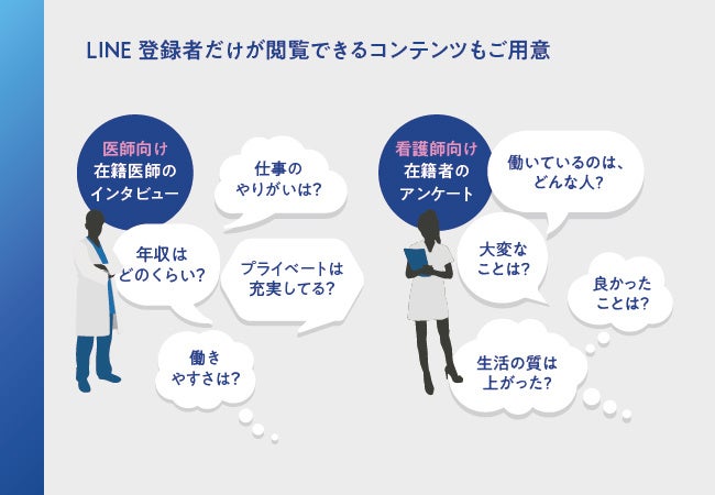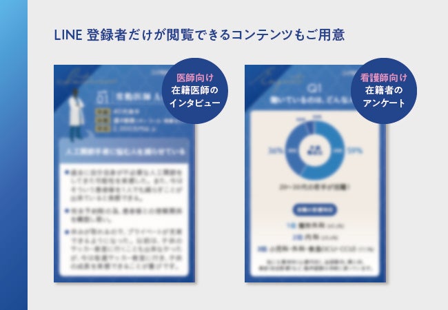 同法人が医師、看護師等の医療従事者の求人に特化したLINE公式アカウントを開設した背景には、自由診療への転職の敷居を低くしたいという狙いがありました。
