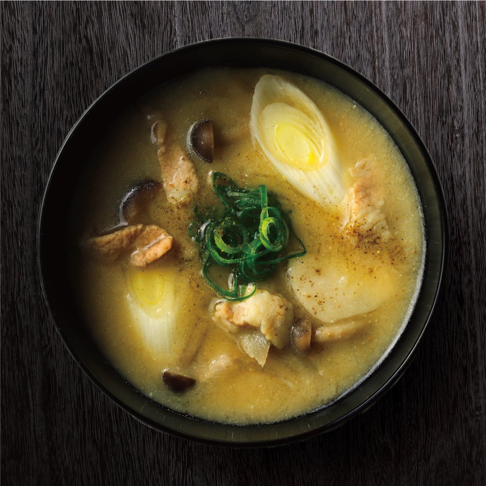 こっくりと甘口に仕立てられた京都 石野味噌の白味噌をベースに、中辛味噌のさっぱりとした旨味。お野菜の甘味を引き立てる、洗練された味をお愉しみください。
