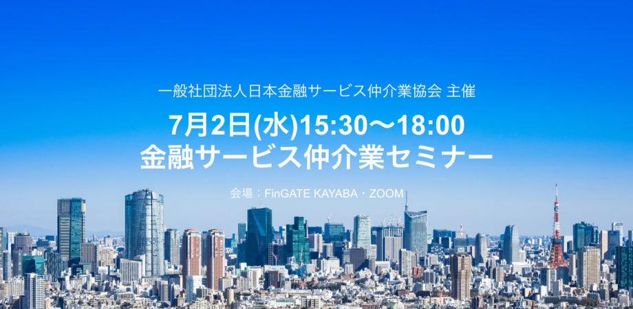 一般社団法人日本金融サービス仲介業協会(以下「本協会」)では、金融サービス仲介業の拡大および利便性の高い金融仲介サービスの提供につなげるため、7月2日(水)15時半から2025年度第1回「金融サービス仲介業セミナー」を開催いたします。
