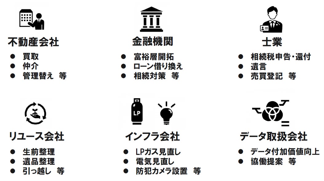 当社が毎月全国から収集する不動産の異動情報は100万件を超え、そのうち約10万件を占める相続情報を筆頭に、様々な業界のお客様に活用いただいております。